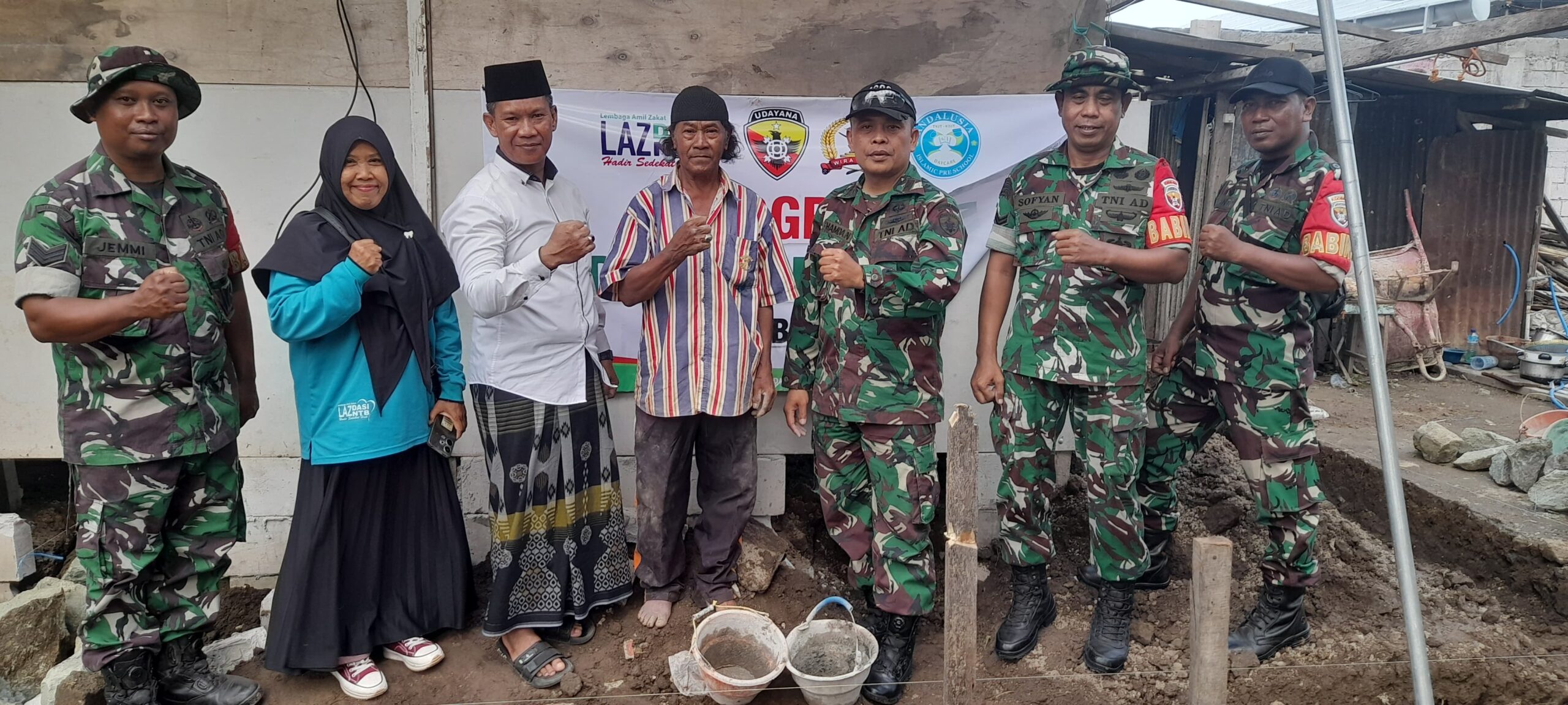Kegiatan ini menandai dimulainya proses rehabilitasi rumah milik Bapak Aripin, salah satu warga kurang mampu yang tinggal di hunian yang tidak layak. Program ini sepenuhnya disokong oleh Lazdazi NTB, dengan dukungan penuh aparat teritorial dan partisipasi masyarakat setempat.