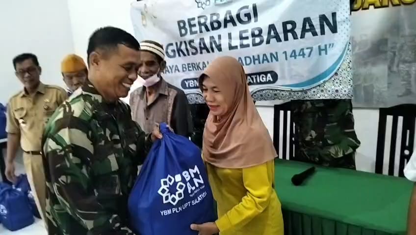 LCN – Surakarta – Wujud nyata kepedulian dengan warga binaan, Koramil 02 /Banjarsari Kodim 0735/Surakarta dipimpin Danramil Kapten Inf Mulyono berkalborasi dengan YBM PLN UPTD Salatiga memberikan bingkisan Lebaran dengan Tema Cahaya Berkah Ramadhan 1447 H kepada Warga Kurang mampu bertempat Di Aula Koramil 02/Banjarsari,Jalan Ahmad Yani No 273 Kelurahan Manahan Kecamatan Banjarsari, Selasa (03/03/2026).