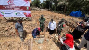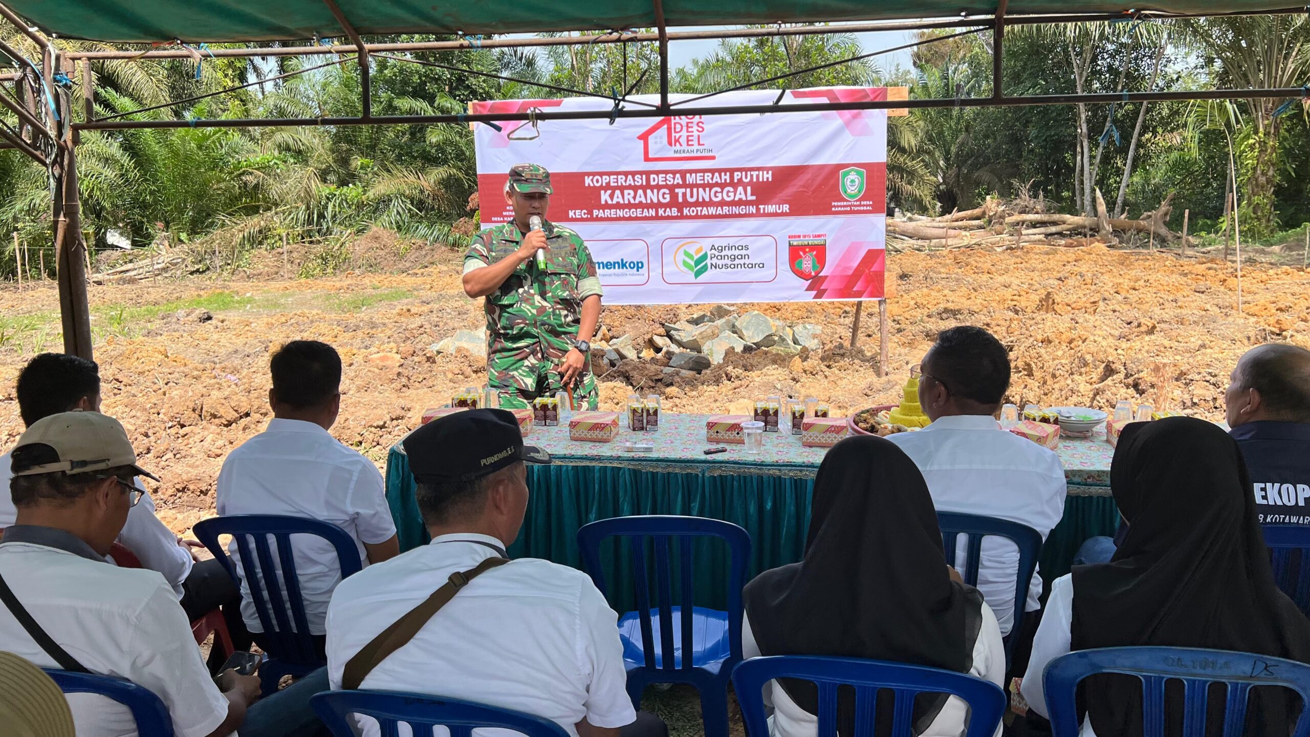 LCN– Kotawaringin Timur- Komandan Kodim 1015/Sampit Letkol Inf Dwi Candra Setyawan, menghadiri sekaligus memimpin acara peletakan batu pertama pembangunan Gerai Koperasi Merah Putih di Desa Karang Tunggal, Kec.Parenggean, Kab.Kotawaringin Timur, Rabu( 26/11/2025)