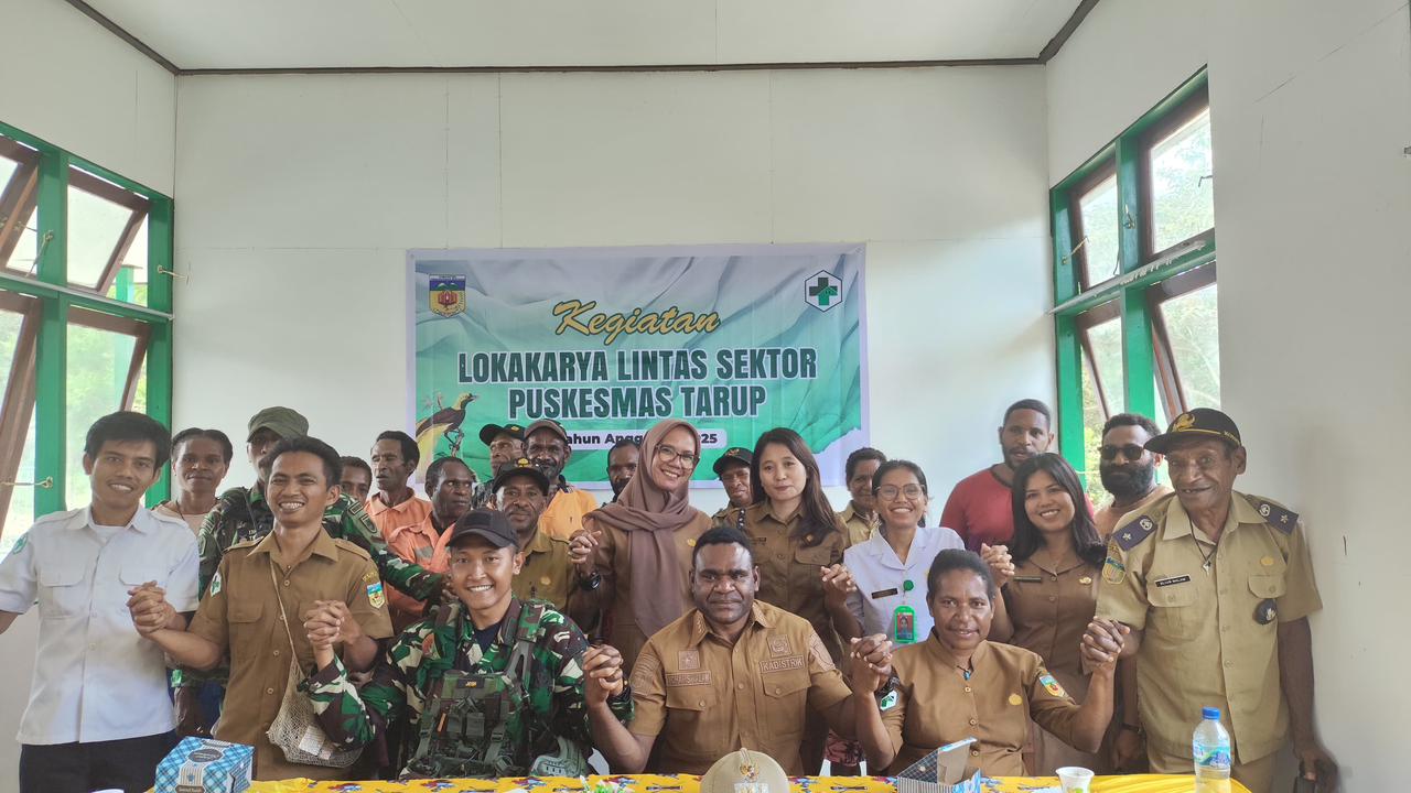 Pos Tarub bersama Puskesmas Distrik Tarub menggelar kegiatan lintas sektoral (Linsek) di Puskesmas Distrik Tarub. Pertemuan ini ditujukan untuk menyelaraskan data dan persepsi lintas unsur, sekaligus memetakan cakupan pelayanan kesehatan yang mencakup tujuh kampung diwilayah Distrik Tarub Kamis, (02/10/2025)