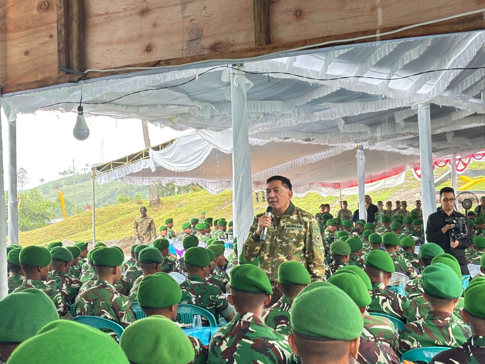 Pertahanan RI melaksanakan makan bersama seluruh prajurit. Momen kebersamaan ini mencerminkan kedekatan pimpinan dengan anggota dilapangan, sekaligus menjadi bentuk perhatian terhadap kesejahteraan moril prajurit.