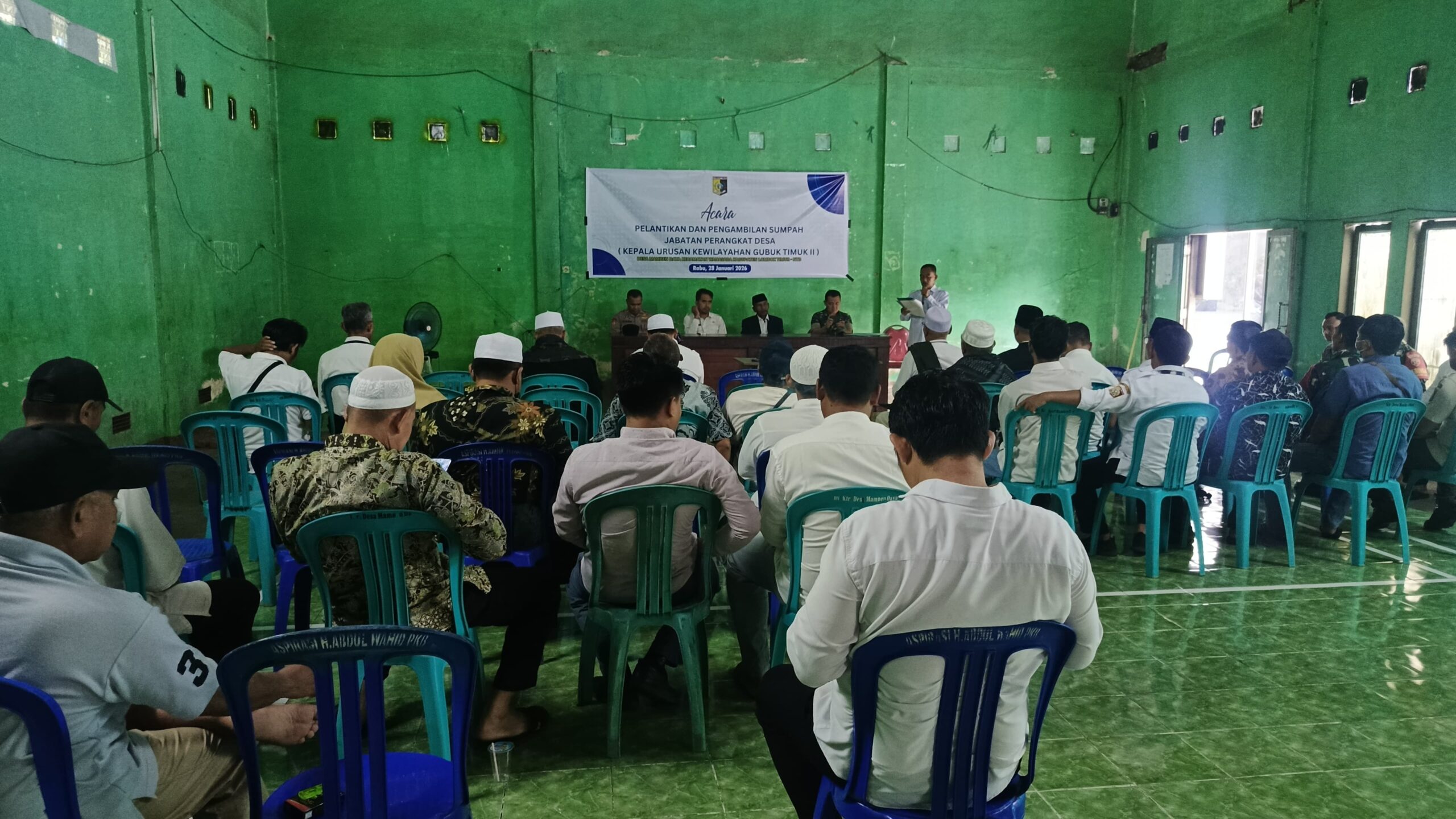 LCN – Lombok Timur – NTB, Babinsa Desa Mamben Daya Serka Abd. Mannan menghadiri acara pelantikan dan pengambilan sumpah jabatan perangkat desa Kepala Urusan Kewilayahan Gubuk Timur II yang bertempat di Kantor Desa Mamben Daya, Kecamatan Wanasaba, Kabupaten Lombok Timur. Rabu (28/01/2026).