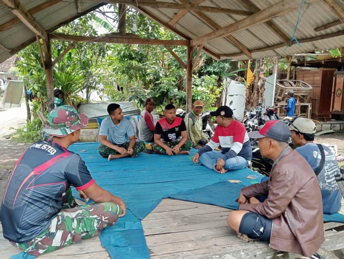 Minggu siang (08/03/2026) di Desa Wonosari, Kecamatan Gondangwetan, Kabupaten Pasuruan, prajurit Satgas TMMD Ke-127 Kodim 0819/Pasuruan tidak langsung kembali ke pos setelah bekerja. Mereka memilih beristirahat bersama warga sambil berbincang santai dalam kegiatan Komunikasi Sosial (Komsos).