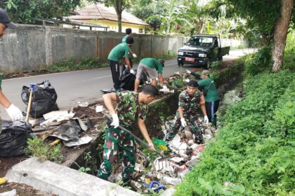 LCN – Surakarta – Dalam rangka memelihara kebersihan lingkungan dan mencegah terjadinya banjir saat musim hujan tiba, Babinsa Kelurahan Kerten, Koramil 01 Laweyan Kodim Surakarta Serma Sug...