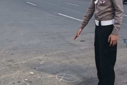 LCN – Lombok Tengah, – Sat Lantas Polres Lombok Tengah Polda NTB, olah Tempat Kejadian Perkara (TKP) kecelakaan lalu lintas antara kendaraan roda enam dum truk dengan sepeda motor di Jala...