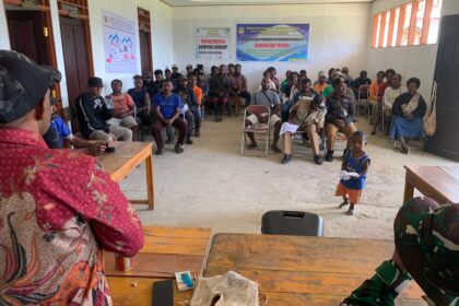 LCN – Kampung Tulo, Pegunungan Bintang — Pos Komando Taktis (Kotis) Yonif 751/Vira Jaya Sakti (VJS) menyelenggarakan Penyuluhan Kesadaran Bela Negara bagi warga Kampung Tulo. Kegiatan ini bertuj...