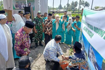 LCN – Lombok Timur – NTB, Dalam rangka mendukung peningkatan fasilitas kesehatan diwilayah binaannya, Danramil 1615-11/Aikmel Kapten Inf Abdul Wahab bersama Babinsa Desa Mamben Daya Serka Abdul ...