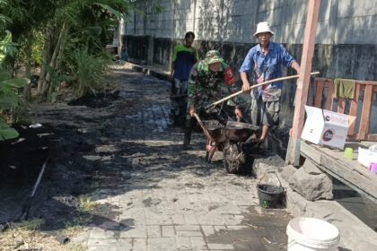 LCN – Ditengah musim kemarau yang cukup panjang, Babinsa Desa Gempol, Serma Purnomo, bersama warga masyarakat sekitar, melaksanakan kegiatan kerja bakti normalisasi saluran pembuangan air (selok...