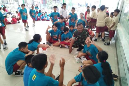 LCN – Surakarta – Babinsa Kelurahan Sudiroprajan Koramil 04/ Jebres Kodim 0735/Surakarta, Sertu Watono dan Koptu Devid S.W memberikan motivasi belajar kepada murid-murid SD Warga, Jalan, I...