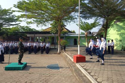 LCN – Blitar – Dalam rangka menanamkan semangat kebangsaan dan kedisiplinan sejak dini, Danramil 0808/11 Binangun Kapten Inf Joni Candra bertindak sebagai Inspektur Upacara (Irup) pada keg...