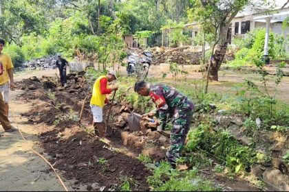 LCN – Pasuruan, – Dalam upaya mendukung pembangunan infrastruktur Desa serta mencegah terjadinya longsor, Sertu Desta Babinsa Koramil 0819/17 Pasrepan melaksanakan kegiatan karya bakti (ka...