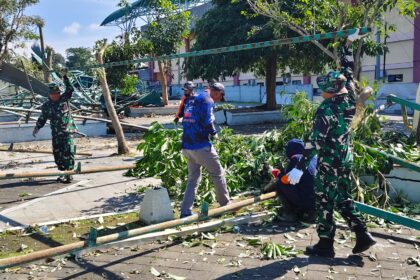 LCN – Blitar – Pasca terjadinya hujan lebat disertai angin kencang yang melanda wilayah Kecamatan Nglegok Kabupaten Blitar, Selasa (14/10/2025). Anggota TNI, Polri, BPBD dan masyarakat mel...