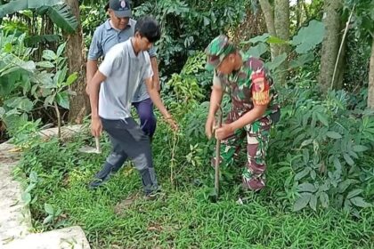 LCN – Blitar – Dalam rangka menjaga kelestarian lingkungan dan mendukung pelestarian sumber air, Babinsa Kelurahan Ngadirejo Koramil 0808/01 Sukorejo Sertu M. Nurhasan melaksanakan kegiatan “Ber...