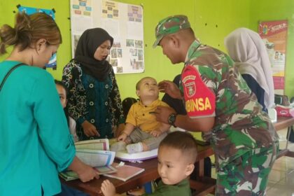 LCN – Kutai Barat – Dalam rangka mendukung program pemerintah dibidang kesehatan masyarakat, Babinsa Koramil 0912-10/Bongan Sertu Marjuki melaksanakan pendampingan kegiatan Posyandu Flamboyan ya...