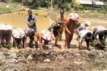 LCN – Kutai Barat – Dalam upaya mendukung ketahanan pangan di wilayah binaan, Babinsa Koramil 0912-05/Muara Pahu Serma Ahmad Mubaidilah bersama Serka Hamka dan Serka Bawani melaksanakan pendampi...