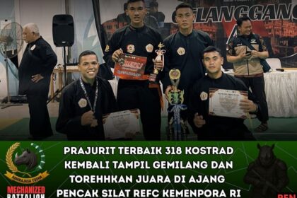 LCN – Bogor – Prajurit Yonif 318 Kostrad kembali menorehkan prestasi membanggakan di ajang bergengsi Revolution Fight Championship (REFC) Pencak Silat 2025 yang diselenggarakan oleh Kemenpora RI...