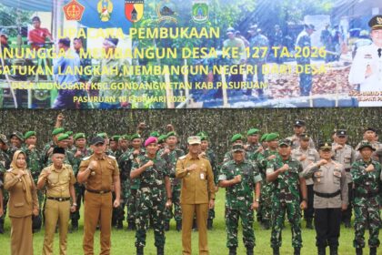 LCN – Pasuruan – Kodim 0819/Pasuruan secara resmi menggelar Upacara Pembukaan TNI Manunggal Membangun Desa (TMMD) Ke-127 Tahun Anggaran 2026, bertempat di Lapangan Wonosari, Dusun Kili Barat, De...