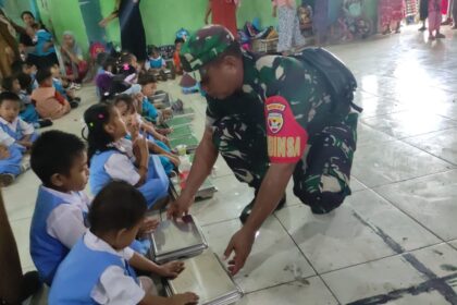 LCN – Lombok Timur – Babinsa Pulau Maringkik, Sertu Nasriadi dari Koramil 1615-04/Keruak, mendampingi kegiatan pengawalan pendistribusian program Makan Bergizi Gratis (MBG) khusus untuk anak-ana...