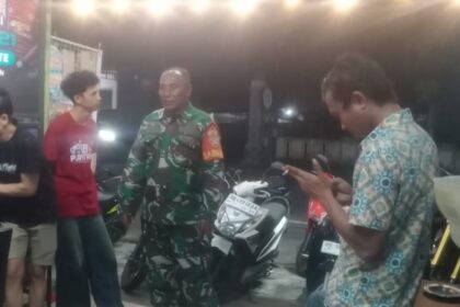 LCN – Lombok Timur – NTB, Babinsa Desa Terara, Serma Zulkaryadi, anggota Koramil 1615-06/Terara, melaksanakan kegiatan patroli malam diwilayah Desa Terara, Kecamatan Terara, Kabupaten Lombok Tim...