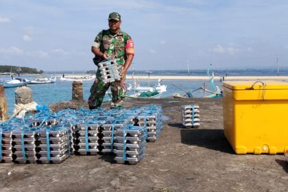 LCN – Lombok Timur – NTB, Babinsa Pulau Maringkik, Sertu Nasriadi, anggota Koramil jajaran Kodim 1615/Lotim, melaksanakan pendampingan sekaligus pengawalan distribusi MBG (Makanan Bergizi) ke Pu...