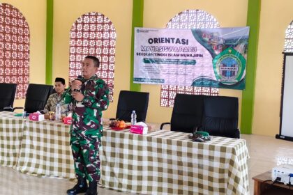Timcyber—-Hulu Sungai Tengah – Danramil 1002-08/Labuan Amas Utara (LAU) Kapten Inf Rudi Hartono memberikan materi Wawasan Kebangsaan kepada para mahasiswa Sekolah Tinggi Agama Islam (STAI) Muhaj...