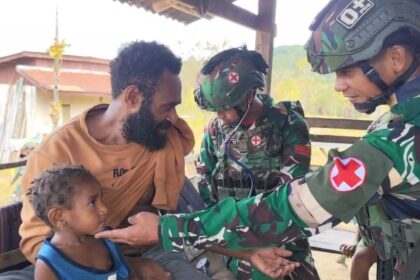 LCN – Pegunungan Bintang, Papua. Dalam rangka memperingati Hari Ulang Tahun Tentara Nasional Indonesia (HUT TNI) ke-80, prajurit Pos Tarub Satgas Pamtas RI–PNG Yonif 751/Vira Jaya Sakti (VJS) me...