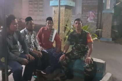 LCN – Lombok Timur, – NTB, Babinsa Desa Tanjung Luar, Serma Mulyadi, melaksanakan patroli malam di Dusun Kampung Baru, Desa Tanjung Luar, Kecamatan Keruak, Kabupaten Lombok Timur. Senin (2...