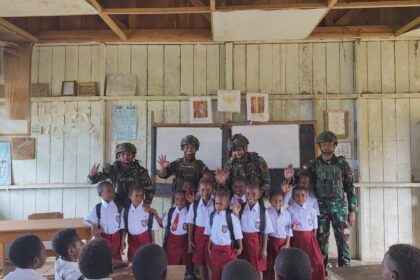 LCN – Tarup, – Pegunungan Bintang, Pos Tarup Satgas Pamtas RI–PNG Yonif 751/Vira Jaya Sakti (VJS) melaksanakan kegiatan pembinaan teritorial (Binter) dengan mengajar wawasan kebangsaan kep...