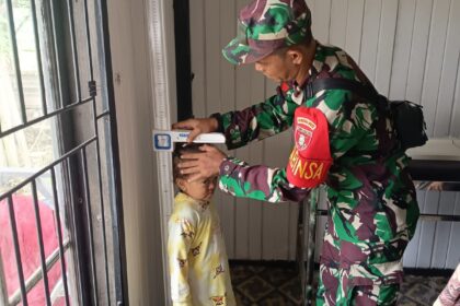 LCN – Kutai Barat – Dalam rangka mendukung peningkatan kesehatan masyarakat, Babinsa Koramil 0912-11/Bentian Besar Kodim 0912/Kubar, Koptu Misbah, melaksanakan pendampingan kegiatan Posyandu Bal...