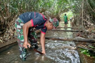 Fokus pekerjaan saat ini adalah penggalian lubang pondasi wingwall yang menjadi bagian penting dari konstruksi penunjang infrastruktur. Dengan alat sederhana dan semangat gotong royong, Personel Tim Satgas TMMD bersama masyarakat bahu-membahu memastikan setiap tahapan pekerjaan berjalan sesuai rencana.