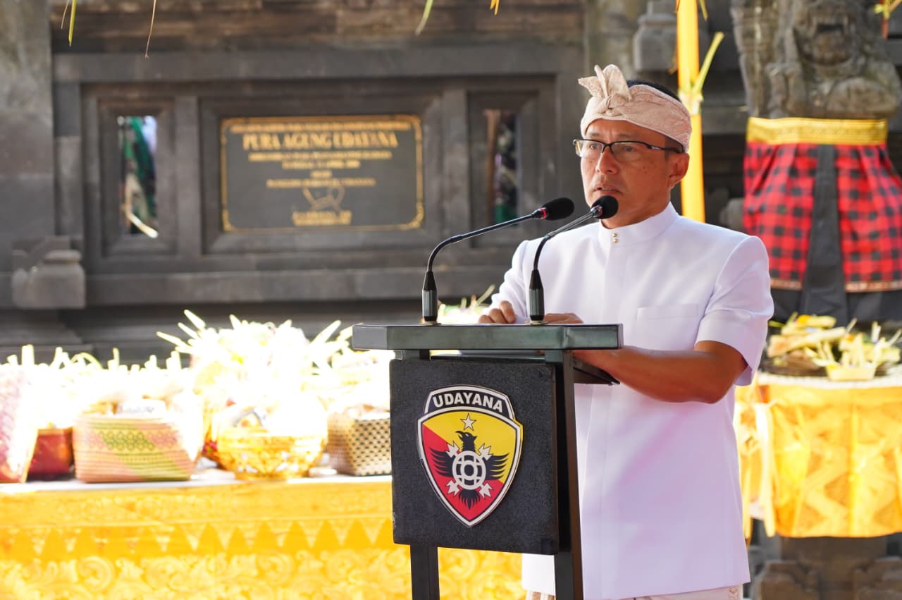 LCN – Denpasar – Pangdam IX/Udayana Mayjen TNI Piek Budyakto didampingi para Pejabat Utama Kodam IX/Udayana menghadiri kegiatan Piodalan Puja Wali Pura Agung Udayana yang dirangkaikan dengan Dharma Shanti Hari Raya Nyepi Tahun Baru Saka 1948/2026 M dengan tema “Vasudhaiva Kutumbakam , Satu Bumi Satu Keluarga Wujudkan TNI PRIMA”, Kamis (02/04/2026), di Pura Agung Udayana, Makodam IX/Udayana, Jalan Udayana No. 1 Denpasar.