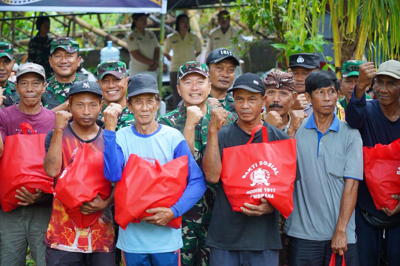 Sebagai bentuk kepedulian sosial, usai peninjauan Pangdam IX/Udayana juga menyerahkan bantuan paket sembako kepada masyarakat sekitar lokasi pembangunan jembatan.