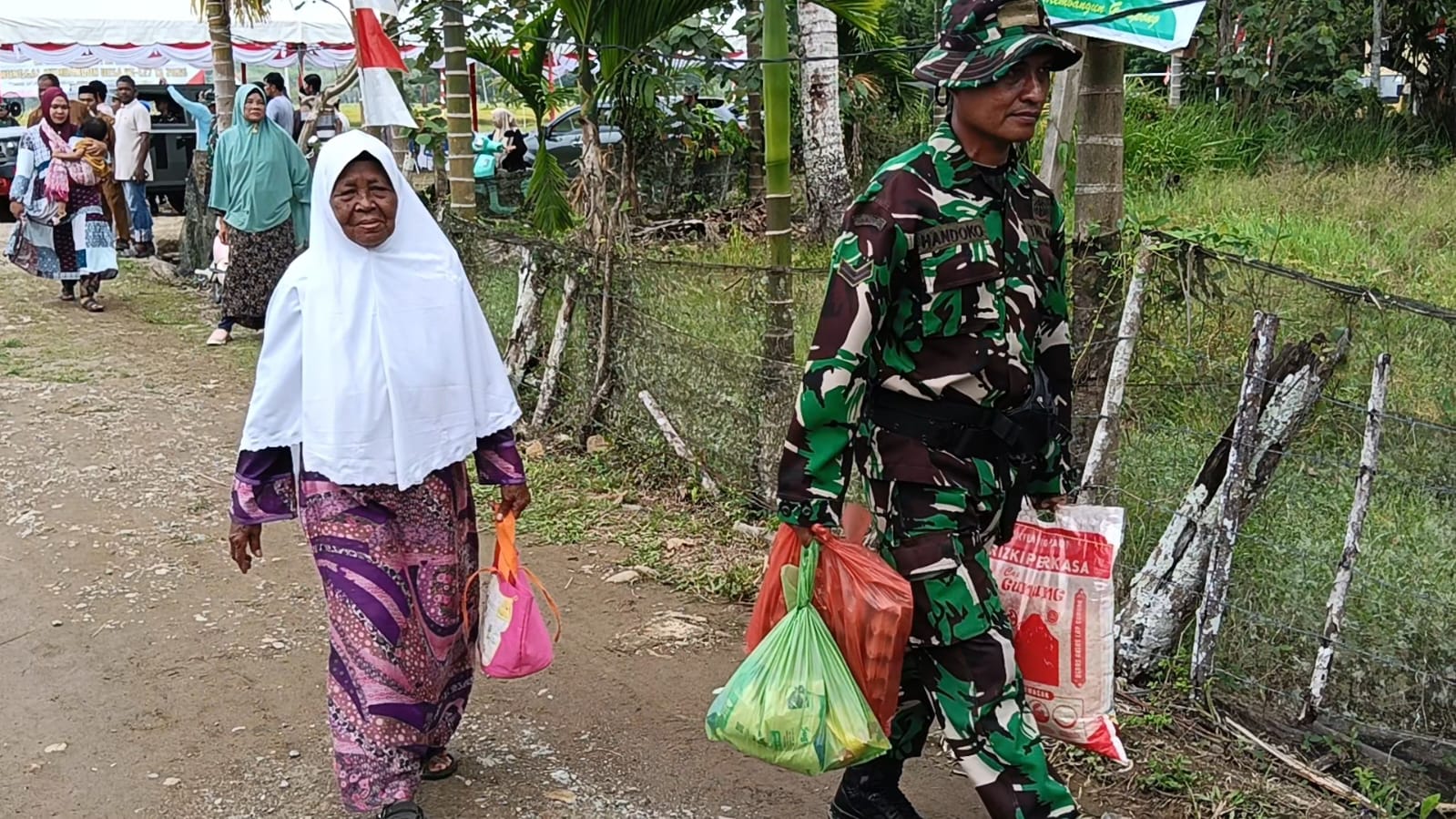 Suasana penuh kehangatan terlihat ketika para prajurit TNI yang tergabung dalam Satgas TMMD dengan sigap membantu masyarakat. Bahkan beberapa Personel terlihat membantu warga membawakan belanjaan Sembako yang mereka beli hingga menuju kendaraan. Aksi spontan para Prajurit tersebut semakin menambah rasa haru dan kebanggaan masyarakat. Kedekatan antara TNI dan warga yang terjalin selama pelaksanaan TMMD seakan terasa semakin kuat dalam momen kebersamaan tersebut.