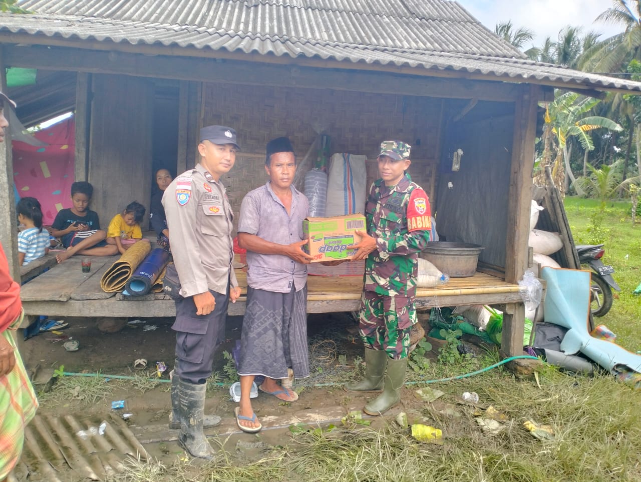 LCN – Lombok Barat, – NTB, Kepedulian negara terhadap masyarakat terdampak bencana kembali ditunjukkan melalui sinergi TNI dan Pemerintah Daerah (Pemda) diwilayah Kecamatan Sekotong, Kabupaten Lombok Barat, Nusa Tenggara Barat (NTB). Pasca hujan lebat yang mengakibatkan banjir disejumlah Desa, Bintara Pembina Desa (Babinsa) Buwun Mas Komando Rayon Militer (Koramil) 1606-06/Sekotong, Serka I Gusti Made Ariawan, melaksanakan monitoring sekaligus pendampingan penyaluran bantuan sembako kepada warga terdampak, Kamis sore (15/01/2026).