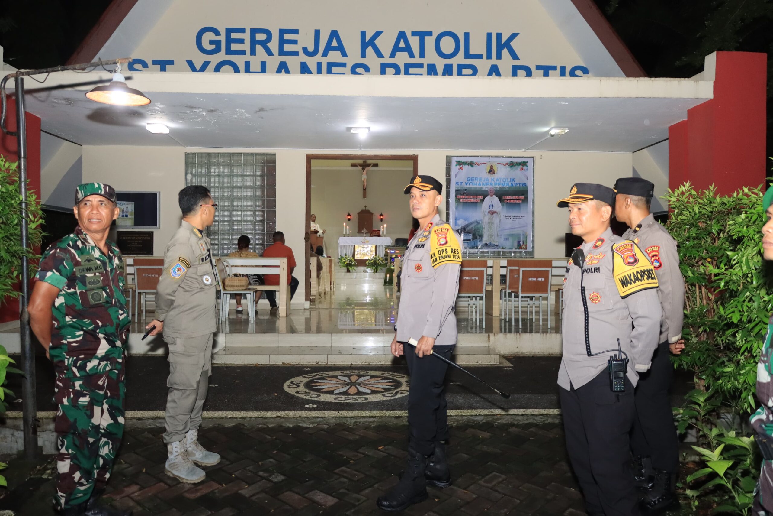 LCN – Lombok Tengah, – Pastikan Keamanan Misa malam Natal 2024, Kapolres Lombok Tengah Polda NTB, AKBP Iwan Hidayat, S.I.K melakukan pengecekan di Gereja Katolik St. Yohanes Pembaptis IPDN.