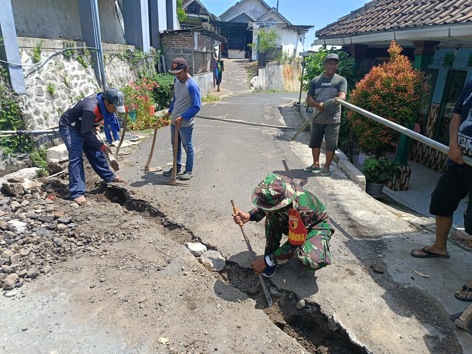 Disela-sela pekerjaannya bersama masyarakat memperbaiki pipa air, Sertu Agus Khabibur Rohman menyampaikan rusaknya saluran air bersih yang ada diwilayah binaannya tersebut, akibat adanya pipa saluran air yang tersumbat dan pipa yang pecah, sehingga masyarakat kesusahan mendapatkan air bersih akibat air yang tidak mengalir ke rumah-rumah warga.