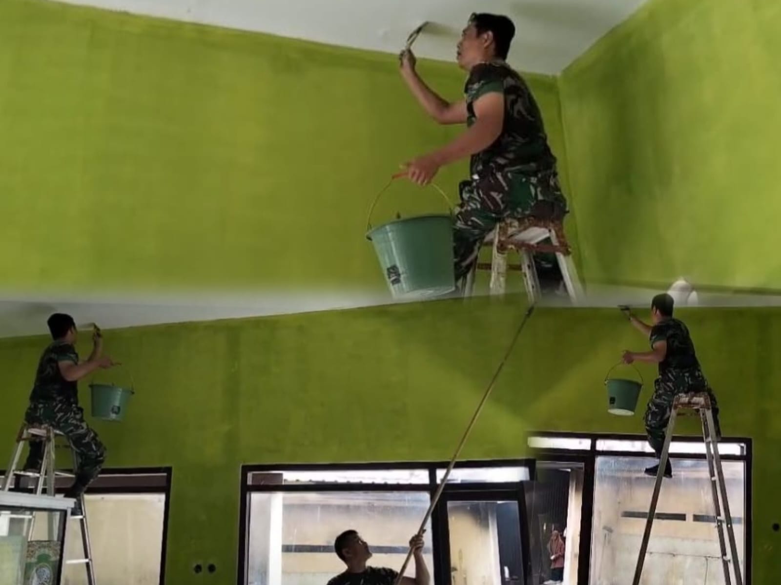 Karya bakti tersebut difokuskan pada pengecatan masjid agar tampak lebih rapi, bersih, dan nyaman digunakan oleh jamaah. Sejumlah anggota Koramil bersama warga setempat bergotong royong sejak pagi hari, menunjukkan semangat kebersamaan dalam menjaga fasilitas umum yang memiliki nilai penting bagi kehidupan sosial dan keagamaan masyarakat.