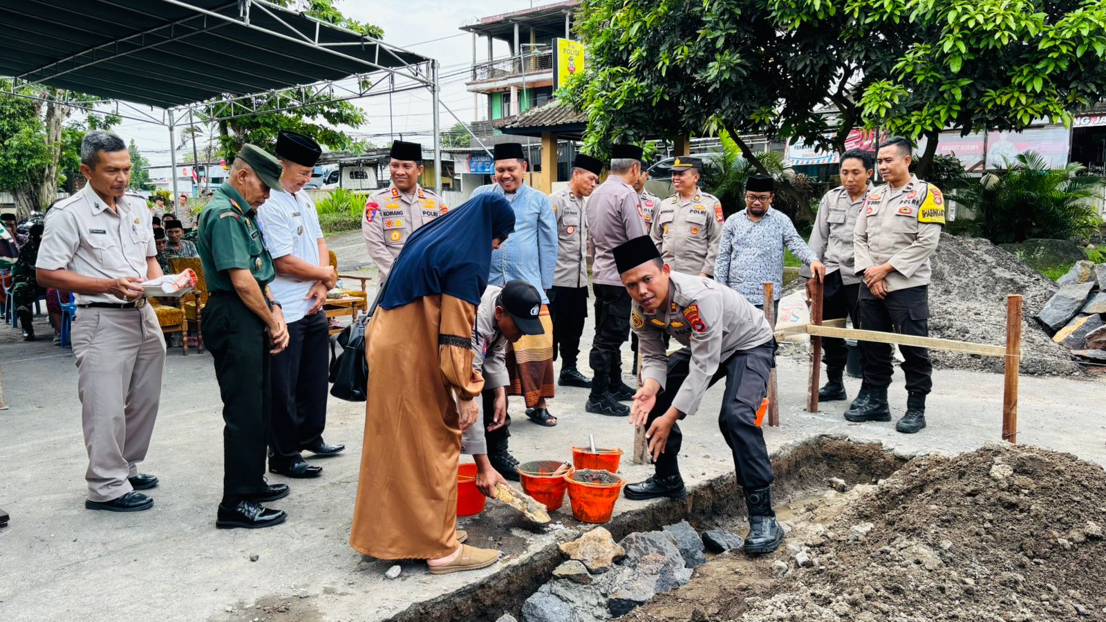 Peletakan Batu Pertama pembangunan Mushola Polsek Terara oleh Kapolres Lotim AKBP I KOMANG SARJANA