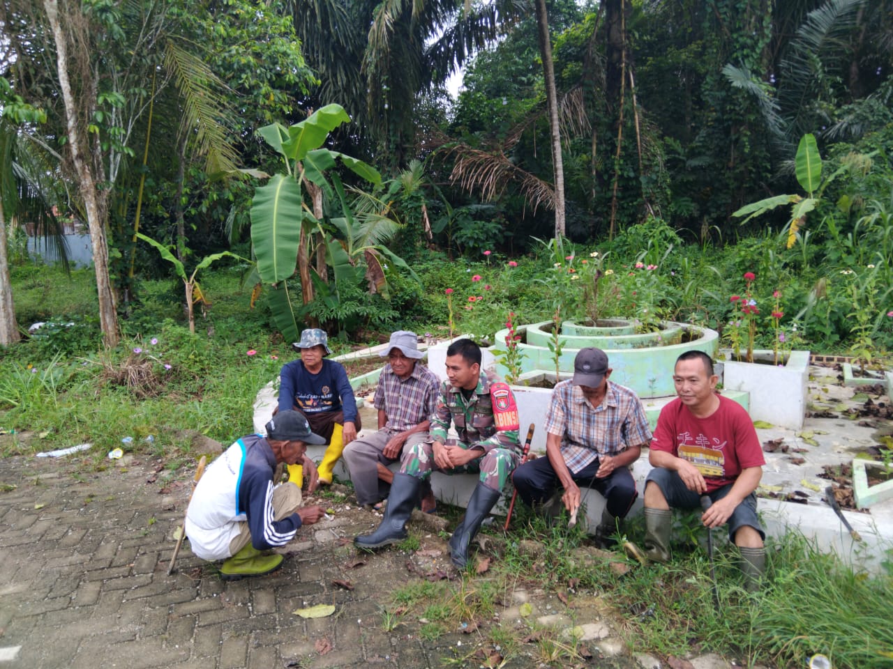 LCN – HULU SUNGAI TENGAH Babinsa Koramil 1002-01/Batang Alai Selatan Kopda Hidayat melaksanakan komunikasi sosial (Komsos) dengan warga Desa Kapar, Kecamatan Batang Alai Selatan, disela kegiatan pembersihan lingkungan, Minggu (09/11/2025).