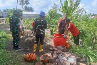 LCN – Kutai Kartanegara- Mewakili Danramil, Bintara Pembina Desa (Babinsa) Loleng, Koramil 0906-09/Kota Bangun, Serka Adri bersama unsur Muspika Kota Bangun menghadiri acara peresmian Posyandu Pinang Merah yang berada di Desa Loleng RT. 04 Kecamatan Kota Bangun (Koba) Kabupaten Kutai Kartanegara.