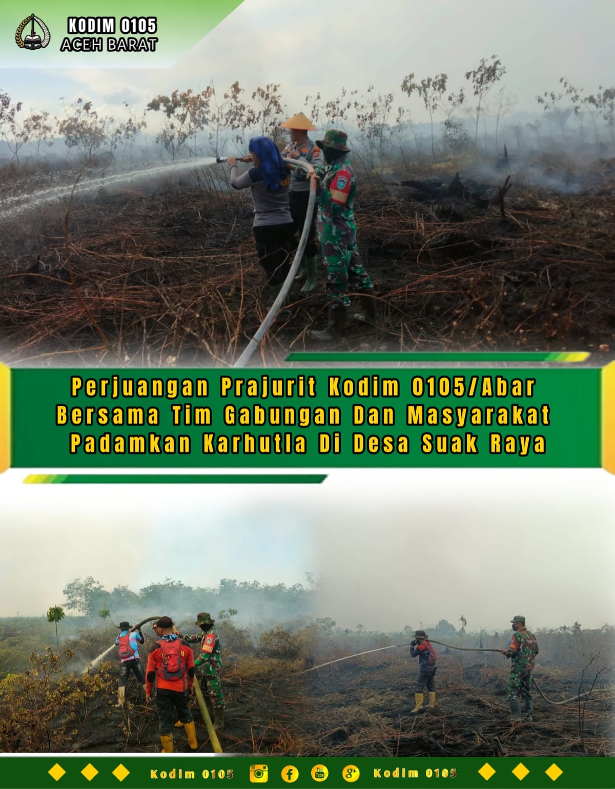 Pantauan di lokasi, tampak Babinsa bersama Tim Gabungan dan masyarakat melokalisir titik api dan melakukan pemadaman dengan menggunakan Mesin Kohler dan Mesin Robin serta Kendaraan Damkar yang dikerahkan BPBD Aceh Barat.