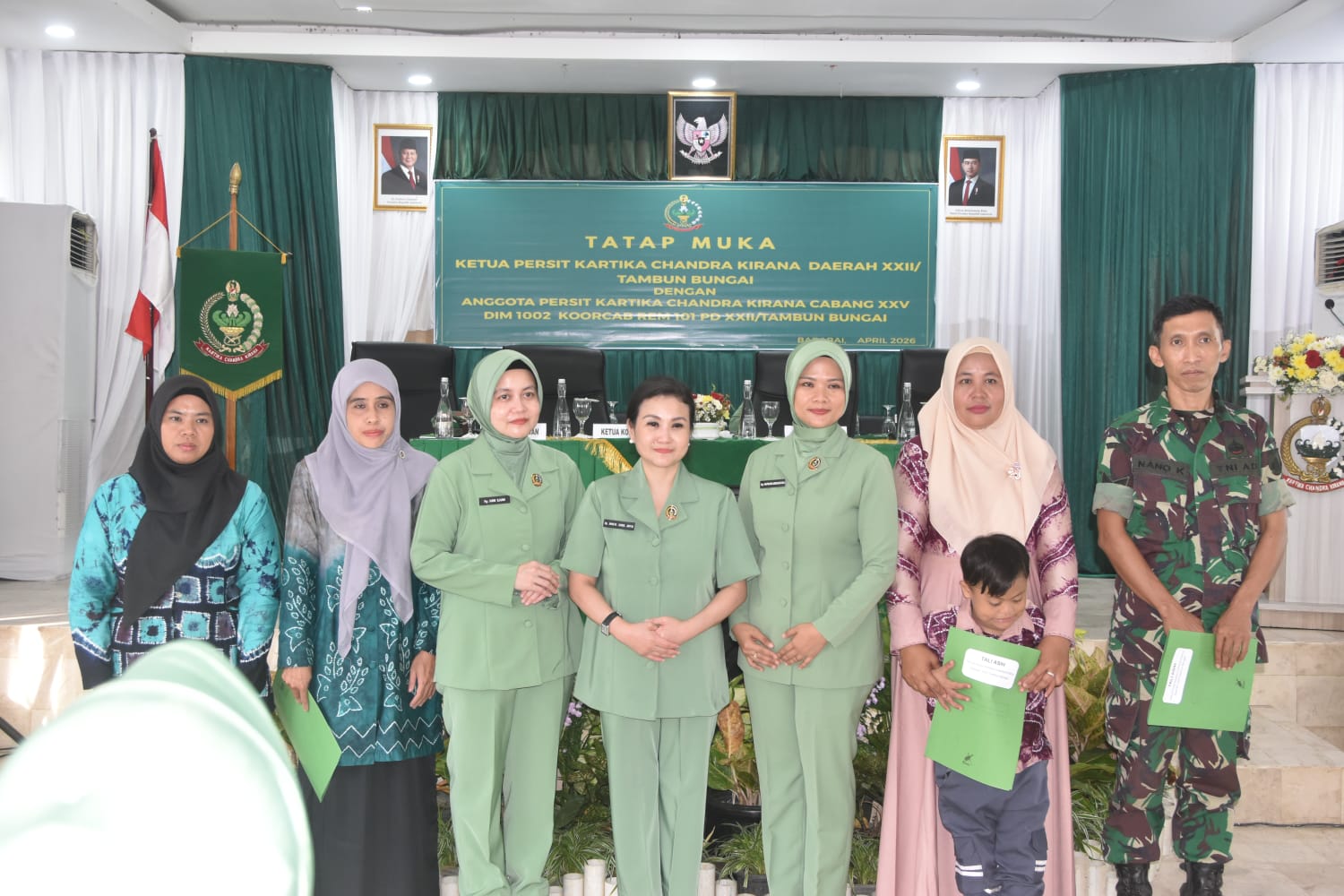LCN – BARABAI – Ketua Persit Kartika Chandra Kirana (KCK) Daerah XXII/Tambun Bungai, Ny. Amalya Zainul Arifin, didampingi Ketua Persit KCK Koorcab Rem 101 PD XXII/Tambun Bungai beserta rombongan, melaksanakan kunjungan kerja ke Kodim 1002/Hulu Sungai Tengah (HST), Kamis (23/04/2026).