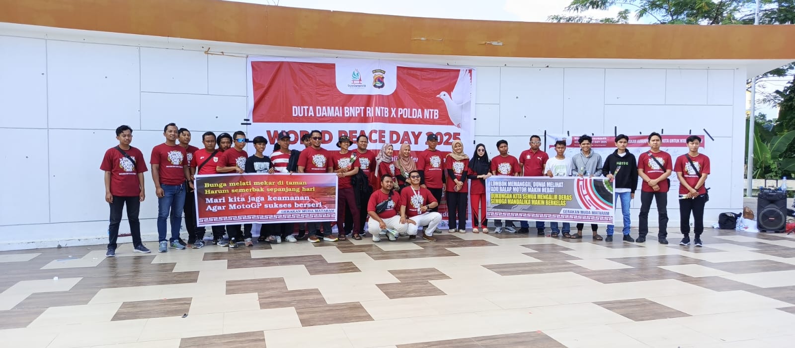 LCN – Mataram, – Memperingati World Peace Day 2025 sekaligus mempersiapkan situasi kondusif, menjelang ajang internasional MotoGP Mandalika 2025, Polda NTB, bersinergi dengan Duta Damai NTB, Ahad (21/09/2025), menggelar kegiatan bertema “Saling Jaga, Saling Menguatkan” di Atrium Teras Udayana, Kota Mataram.