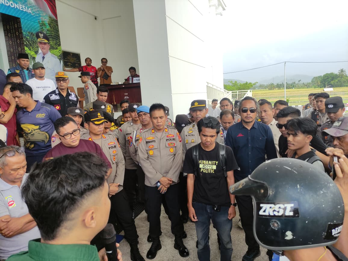 LCN – Lombok Utara – Dalam rangka menjaga keamanan dan ketertiban masyarakat, Polres Lombok Utara Polda NTB, menerjunkan sebanyak 75 personel untuk melaksanakan pengamanan aksi damai yang digelar oleh Aliansi Mahasiswa dan Masyarakat Lombok Utara, Jumat (17/10/2025) di Kantor Bupati Lombok Utara.