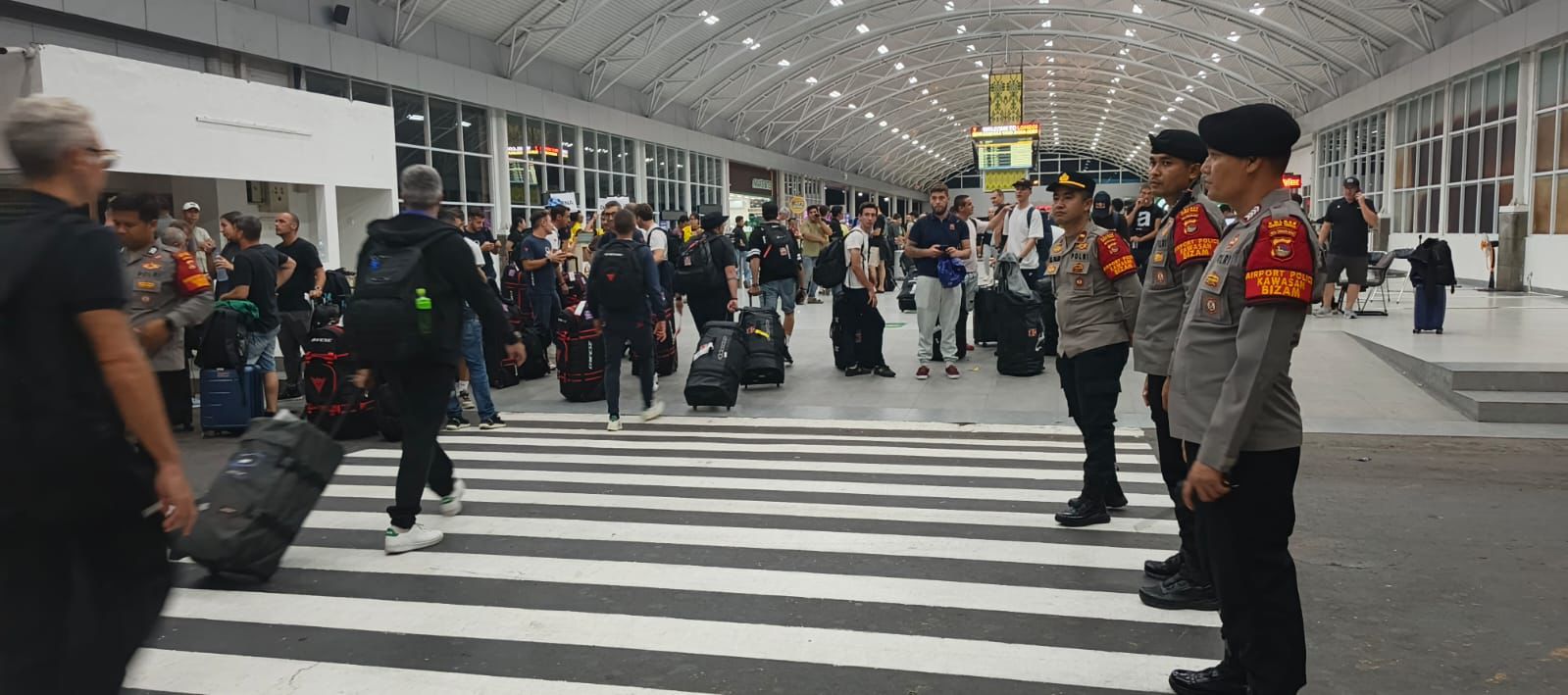 LCN – Lombok Tenga, – Polres Lombok Tengah Polda NTB, laksanakan pengamanan terhadap kedatangan rombongan Riders dan Crew tim MotoGP di Bandar Udara Internasional Zainuddin Abdul Madjid (BIZAM), Senin (29/09/2025).