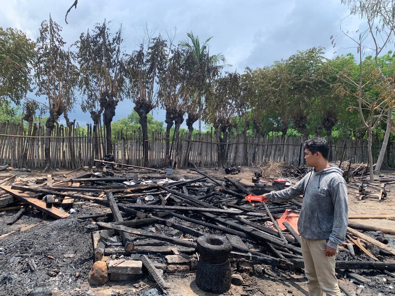 Akibat kejadian tersebut, satu unit rumah berukuran sekitar 4×6 meter dengan konstruksi kayu, atap daun kelapa, dan dinding anyaman bambu, serta satu berugak berukuran 2×4 meter turut hangus terbakar.