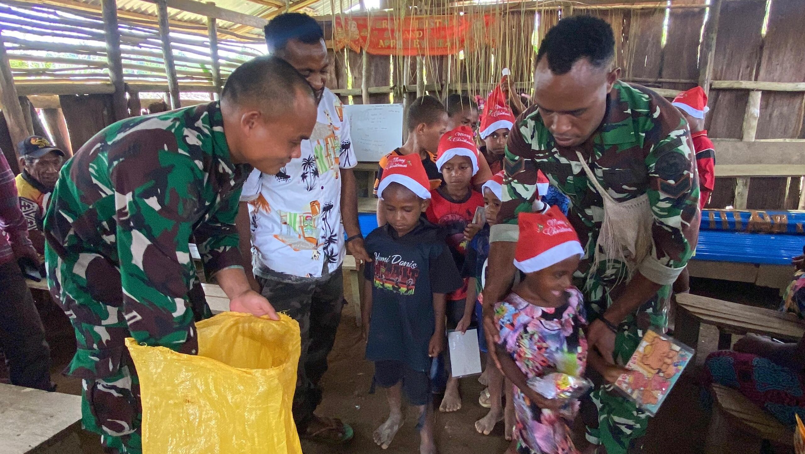 Pos Denom Satgas Yonif 751/VJS Gelar Ibadah Bersama dan Bagikan Bingkisan Natal untuk Anak-Anak