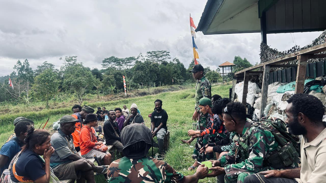 LCN – Oksibil, – Pegunungan Bintang, Pos Okpol Satgas Yonif 751/VJS bersama masyarakat binaan melaksanakan kerja bakti membersihkan akses jalan dari rumput liar dan semak yang mengganggu pandangan pengendara. Kegiatan gotong royong ini bertujuan merawat jalan agar aman dan nyaman dilalui warga dalam aktivitas sehari-hari. Senin,03/11/2025.