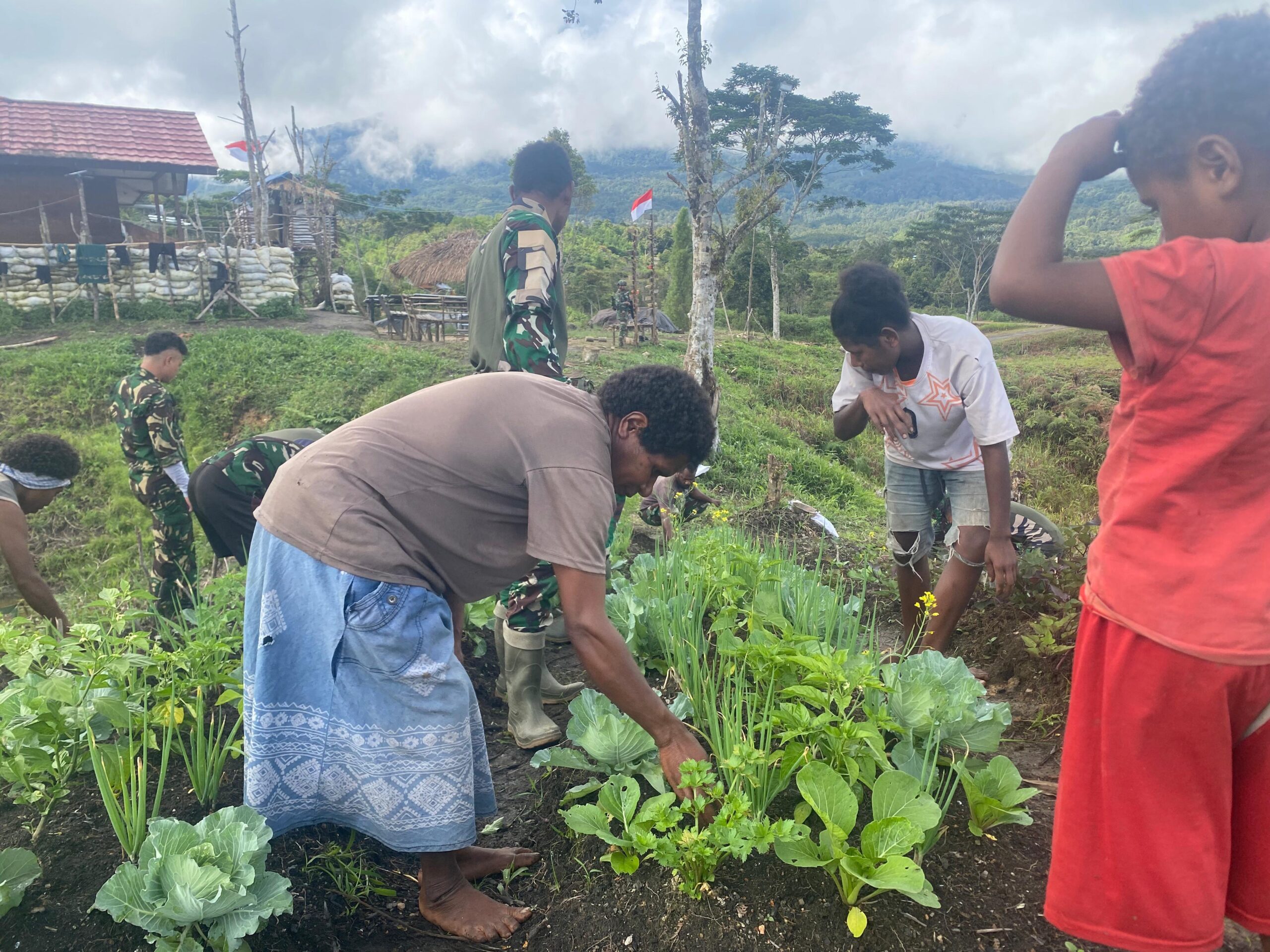 Menariknya, bibit sayuran diperoleh langsung dari masyarakat sekitar, dan proses penanaman dilakukan bersama-sama, menciptakan suasana penuh gotong royong dan kekeluargaan antara prajurit dan warga. Kebersamaan ini menjadi simbol kuat bahwa TNI tidak bekerja sendiri, tetapi tumbuh dan berkembang bersama rakyat.
