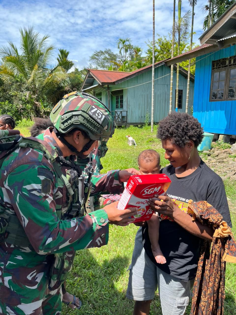 LCN – Kampung Beringin, Pegunungan Bintang, Pos Selal Satgas Yonif 751/Vira Jaya Sakti (VJS) melaksanakan bakti sosial yang dirangkai dengan pengobatan bagi warga yang memiliki keluhan kesehatan. Kegiatan diikuti antusias masyarakat dan menjadi ruang silaturahmi TNI–rakyat dengan semangat, “Bersama TNI bahagia. Mari saling berbagi!” Rabu, (05/11/2025).